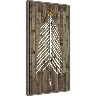 ART DESCRIPTION: Keep it simple and chic when showcasing your holiday decorating style with this eye-catching piece. Crafted to look like a simple pine Christmas tree painted upon rich, brown wooden planks, the artwork adds a touch of holiday whimsy and wonder without adding too much busyness and frills to your walls. This Amanti Art canvas art print was created by Grace Popp and printed by Amanti Art in Madison WI. The canvas is stretched by hand and finished with a float frame. Individually made using traditional custom framing techniques, it has the quality you would expect from your local frame shop. Because of our attention to detail and focus on artistry, architects, interior designers, and homeowners alike choose this framed canvas artwork to create beautiful living spaces.