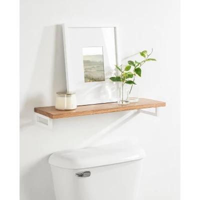 A beautiful way to layer your decor and elevate your aesthetic is the beautiful Lankford shelf. The Lankford wall shelf takes inspiration from simple, Scandinavian design, featuring a clean look with a lovely two-tone natural wood and white finish. The Lankford features a mango wood tabletop and a metal base for a robust look and premium quality. It’s handcrafted in India by skilled artisans, giving it a distinct finish and woodgrain. It’s perfect to use as a floating bookshelf, a plant display, or functional storage in your kitchen, bedroom, or entryway. The overall dimensions of the Lankford shelf are 24 inches wide by 8 inches deep by 3 inches thick, which is a fabulous display piece on its own or in an arrangement of multiples for a robust storage area in your home. It’s the perfect way to save space in your home while showcasing your personality through photos, accents, and more! Hanging this shelf is simple and straightforward with the pre-drilled holes in the metal base.