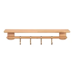 Bring a shelf into your home that has a sophisticated and minimalist design with the Alta shelf. Inspired by Scandinavian aesthetics, the Alta shelf was design with a simplistic look, featuring a casual, natural finish on the solid wood material. The solid wood construction emphasizes the high quality of this modern storage solution, creating a robustness that lasts for multiple years of use and display. Four metal hooks are attached to a hanging rod, making the Alta fantastic for hanging clothing, household necessities, and more. The overall dimensions of this shelf are 27 inches wide by 5.25 inches deep by 7 inches tall, making it standout accent shelf for your favorite wall in the home. Thanks to its minimal design, it looks fantastic in various decor scenes, from modern, to Scandi, to boho-chic! The Alta looks great as a place for aprons in your kitchen, an area for robes and towels in your bathroom, or a decorative accent in your entryway. Keyhole hangers are attached to the back of the Alta shelf for quick and resilient installation in minutes.