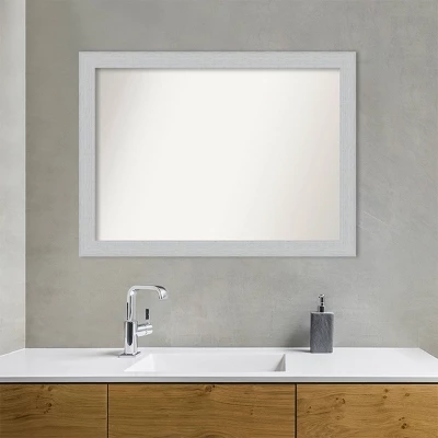 - MIRROR DETAILS: This mirror features premium glass for a clear, undistorted image and has a non-beveled surface to maximize the viewing area. The overall size of this bathroom mirror measures 42.25 x 31.25 inches, including the frame. Its reflective area measures 38 x 27 inches.