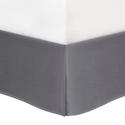 - Solid grey bed skirt, grey Euro shams with oatmeal tone flange