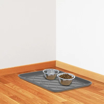 - RAISED EDGE – You won’t have to worry about accidentally tracking dirt and water through the house. The shoe mat tray features a 1-inch raised lip which helps contain messes from pet bowls, cat litter boxes, potted plants, or paint cans.