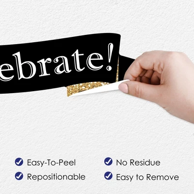 Adult 50th Birthday – Gold Wall Decals Backdrop includes 1 sheet of vinyl wall stickers that include letters and shape pieces that form the perfect Happy 50th Birthday backdrop for your Gold Birthday Party. Wall Decal sheet measures 50 inches wide by 16.5 inches tall. Pieces range in size from 26.5 x 5.75 inches to 3.25 x 3.75 inches. Effortless Decor: The Adult 50th Birthday – Gold stickers are an easy DIY party decoration that will make a big impact at your celebration. Stick them on a flat wall surface to create that picture-perfect setting and then grab your camera to capture all the fun. Easy to Use: Adult 50th Birthday – Gold vinyl decals are easy-to-peel and repositionable. Wall art stickers will adhere to various surfaces including painted walls, plastic, wood, glass, and metal. To use, make sure your surface is clean and dry. Slowly peel the sticker from the paper to avoid tearing and smooth over with your hand. They are also easy to remove, leaving no residue. High-Quality Supply: Adult 50th Birthday – Gold wall stickers come with a quality matte finish and vibrant colors. They are printed on water-resistant professional quality material and will arrive on one full sheet rolled. Made In The USA: Adult 50th Birthday – Gold Wall Decals are designed and manufactured at our Wisconsin facility using materials that are Made in the USA. Adult 50th Birthday – Gold Vinyl Stickers uses a No-Mess Glitter Print: Our vinyl stickers are designed with a printed image of glitter, eliminating glitter flake while maximizing bling effect!