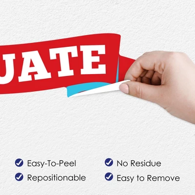 Nurse Graduation Wall Decals Backdrop includes 1 sheet of vinyl wall stickers that include letters and shape pieces that form the perfect Red Med Congrats backdrop for your Medical Nursing Graduation Party. Wall Decal sheet measures 50 inches wide by 16.5 inches tall. Pieces range in size from 30 x 6.5 inches to 3.25 x 3 inches. Effortless Decor: The Nurse Graduation stickers are an easy DIY party decoration that will make a big impact at your celebration. Stick them on a flat wall surface to create that picture-perfect setting and then grab your camera to capture all the fun. Easy to Use: Nurse Graduation vinyl decals are easy-to-peel and repositionable. Wall art stickers will adhere to various surfaces including painted walls, plastic, wood, glass, and metal. To use, make sure your surface is clean and dry. Slowly peel the sticker from the paper to avoid tearing and smooth over with your hand. They are also easy to remove, leaving no residue. High-Quality Supply: Nurse Graduation wall stickers come with a quality matte finish and vibrant colors. They are printed on water-resistant professional quality material and will arrive on one full sheet rolled. Made In The USA: Nurse Graduation Wall Decals are designed and manufactured at our Wisconsin facility using materials that are Made in the USA.