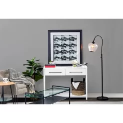 Add an eye-catching design piece to your bedroom or living space with the Bradford floor lamp. With warm light shining through a clear tulip-shaped glass shade, this lamp creates a look that is as aesthetic as it is functional. The 59″ tall lamp features a 10.5″ diameter round base and curved stand with a dark bronze finish, and a matching metal rim accenting the glass shade, making it the perfect solution to provide lighting and vintage dĂ©cor to any space. Completing the vintage look is an included 40W Edison bulb. For versatile lighting options, the base of the shade is adjustable, allowing you to pivot the shade up or down to direct the light wherever it’s needed. Operated by a rotary switch on the stand to easily turn it on or off, the Bradford floor lamp also features a 5′ clear cord. Complete your space’s look with the coordinating Bradford pendant lighting, wall lamp, and desk lamp.