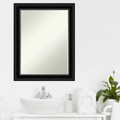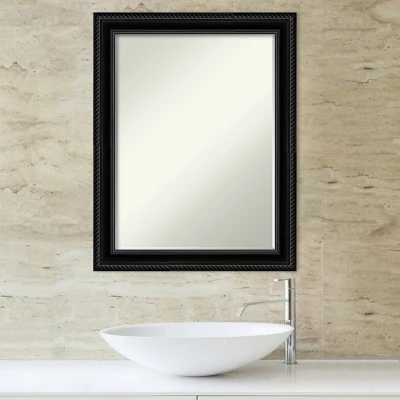 Give your bathroom the finishing touch with this Petite Bevel bathroom mirror. The Corded Black frame is a black frame with a satin finish and a matte grey finish outlining the corded outer edge and beaded inner lip. The frame is 2.25 in. wide and stands 1 in. off the wall. It’s Individually made using traditional custom framing techniques, it has the quality you expect from your local frame shop. It holds its value with premium finishing that can be appreciated up close. Because of our attention to detail and focus on artistry, architects, interior designers, and homeowners alike choose this mirror to create beautiful living spaces.