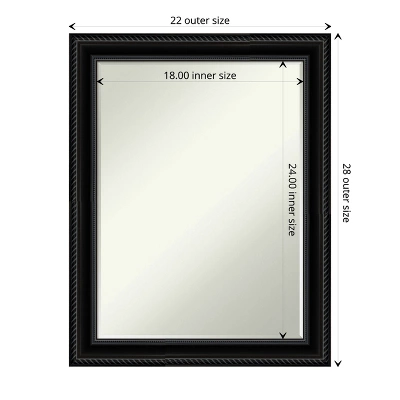 - MIRROR DETAILS: This mirror features premium glass for a clear, undistorted image and is finished with a petite 1/2-inch beveled edge which is more delicate than a traditional bevel. The overall size of this bathroom mirror measures 22 x 28 inches, including the frame. Its reflective area measures 18 x 24 inches.