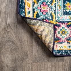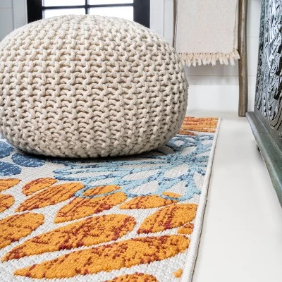 With its splashy, modern floral pattern in blue and orange, this indoor-outdoor rug has a fresh look that’s ideal for a family room, dining room, bedroom, or kids’ rooms. Soft, durable synthetic fibers are an easy maintenance solution for homes with kids and pets. Choose from several colorways and add a splash of style to your porch or patio.