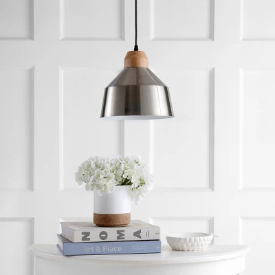 Bring industrial-chic style to any bedroom, living room, or kitchen with this modern pendant. Crafted with a metallic shade and contrasting light brown wood accents, its sleek design adds just the right amount of contemporary flair. Care Instructions: Before cleaning any lamp shade or fixture, disconnect the power source. Wipe with a soft, dry cloth. Avoid the use of chemicals and household cleaners as they may damage the finish.
