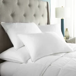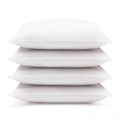 Celebrate a great night’s sleep and refresh multiple beds with this four pack of pillows. These pillows are filled with hypoallergenic polyester and wrapped in crisp and breathable cambric cotton. They are great for stomach and back sleepers or can be used as sham stuffers. Filled and finished in the USA of imported materials. This four pack of pillows is great to use for outfitting a vacation rental property (be sure to add pillow protectors). For eco-friendly shipping savings these pillows come rolled and simply require some fluffing and/or 15 minutes in the dryer upon opening. Go ahead and hug this polyester pillow all night long! Easy Care Machine Washable & Dryable