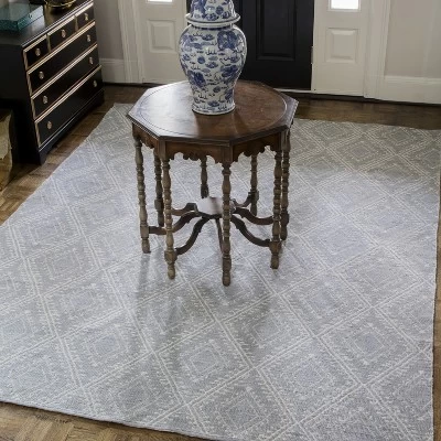 Tone-on-tone textures abound in this decorative rug with geometric influences. Hand woven from soft synthetic fibers, each diamond and herringbone patterned rug takes inspiration from traditional Kilim carpets to create repeating motifs that are thoroughly modern. Styles range in subdued shades of soft brown to indigo blue in a bohemian palette that looks beautiful in formal and casual spaces.