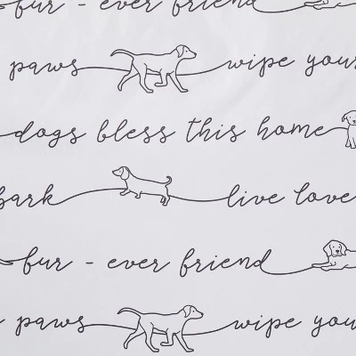 Show your happiness for with your puppy by refreshing your bathroom with the Furever Friends bathroom collection by SKL Home. This fun group has contemporary charcoal and white colors as well as a simplistic style. The fabric shower curtain is printed with cursive text and dogs in a pleasing design.
