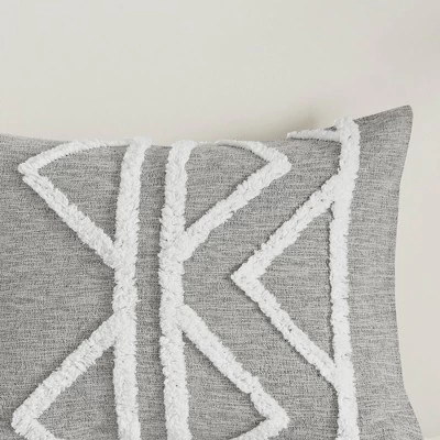 TheHayes 3 Piece Cotton Chambray Comforter Set with Chenille brings a perfect blend modern and boho styles to your bedroom. This cotton comforter features chenille taping and trims, in a geometric design, that contrast the grey chambray fabric, for a chic boho look. A solid reverse offers a light contrast to the top of the bed, while hidden bar tacks provide a clean, duvet-like finish. The 2 matching shams repeat the pattern of comforter to complete this globally inspired bedding set. Machine washable for easy care, this 100% cotton comforter set adds a sophisticated charm to your bedroom decor.