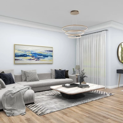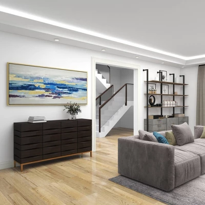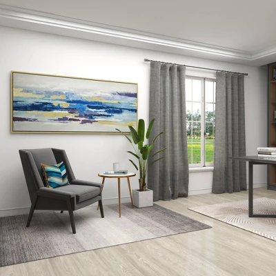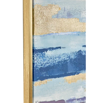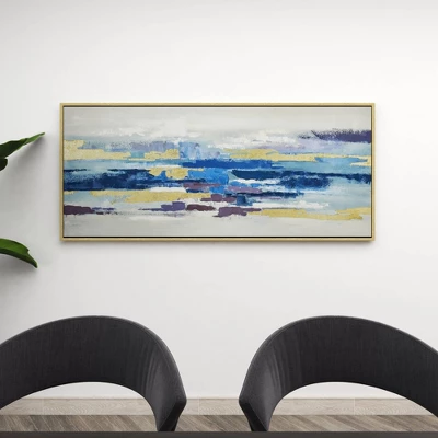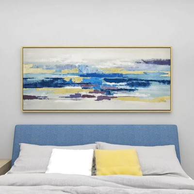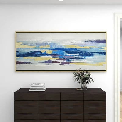 This wall art exude natural beauty and sophistication in both color and composition. Showcase your personality and turn your walls into an art gallery with this impressive wall art. Add some colorful and creative vibes in your contemporary style living space by displaying framed canvas art on living room walls. This item ships in 1 carton. Can be hung horizontally using the sawtooths on the back; nails and screws not included. Suitable for indoor use only. This item ships fully assembled in one piece. This is a single blue colored canvas wall art. Modern style.