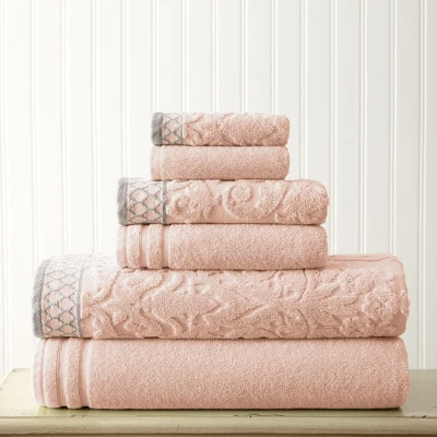 - Includes: 1 each of jacquard bath hand and wash, 1 solid each of bath hand and wash.