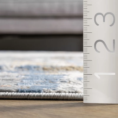Elevate your space with a hint of contemporary flair with this abstract floor covering. Machine made in Turkey of soft synthetic materials prized for their durability and ease of care. Place in any room that could use a pop of color and pair with any décor from modern to bohemian. Kick back and relax with our pet-friendly and easy to care for area rugs.