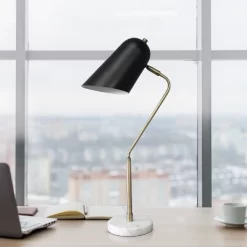 Asymmetrical Marble And Metal Desk Lamp With Sloped Shade Antique Brass – Lalia Home