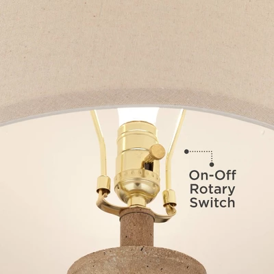 Ideal for a rustic farmhouse or a coastal style room, these table lamps offer a warm and comfortable accent for your home decorating. The vase profile bases come in a rustic beige finish. Up top are tapered shades in an oatmeal color material.