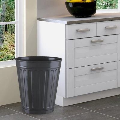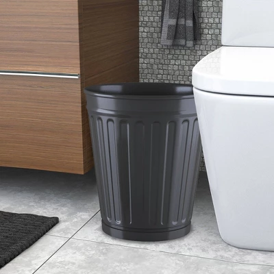 - A compact footprint allows each accessory to fit even the most crowded counter spaces. Hardy metal is chosen for its ability to last years in moisture-rich environments, and the ribbed pattern finish does not fade even when in contact with bare hands, water, or soap. This wastebasket is generously proportioned to hold most bathroom waste with ease.