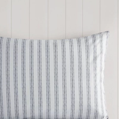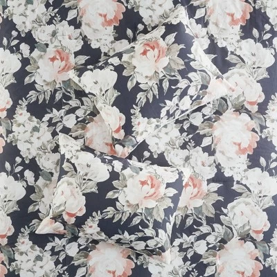 The Sorrel Cotton Printed Reversible Comforter Set includes everything you need to transform your sleeping space into a serene retreat. The comforter is accented with large, expansive florals on a navy background, and it reverses to a striped pattern on a white background for versatile styling. The included pillow shams and decorative pillows feature a mix of solids, prints and embroidery along with ruffled trim or tasseled accents, while the navy bedskirt provides the perfect finishing touch.
