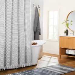 Elegant and stylish, this Stitched Grid Lines Woven Shower Curtain from Hearth & Hand™ with Magnolia brings a refreshing update to your bathroom decor. Made from a soft dobby fabric, this decorative shower curtain is designed with a buttonhole top for easy installation. Showcasing a heather brown hue, it features stitched grid lines in white for a touch of contrast and textural flair, making it a great pick for contemporary bathrooms.