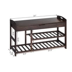 Costway 3-Tier Bamboo Shoe Bench Entryway Storage Rack Organizer Home Hallway BrownNature