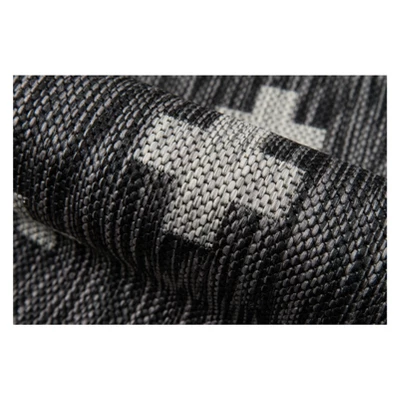 This particular geometric print is a striking repeat of light gray crosses that cover the black background in shapes that recall the Romanesque cutouts of classical Italian architecture. Resilient polypropylene fibers are stain, heat and UV-resistant, retaining their color and texture throughout consistent exposure to the elements.