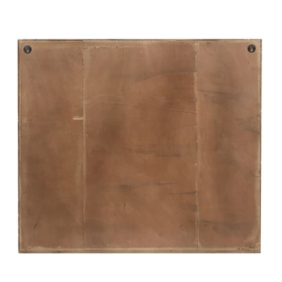 Decorate your home in vintage farmhouse style with these unique hanging wall shelves with sliding barn doors. These shelves can be used to organize your entryway, mudroom, kitchen, bathroom, living room, or guest room. This box shelf has three inner shelves and each side has two shelves to store items of different shapes and sizes. The two barn doors slide to cover either the sides or the center. The three center shelves are each 13.5 inches wide, 5.75 inches deep, and there is 8 inches of height between shelves. The side cubbies are each 7.75 inches wide, 5.75 inches deep, and have 12 inches of height between the two shelves. The outer dimensions of this wall shelving unit are 30 inches wide, 27.25 inches high, and 7.25 inches deep. Two metal Z-bracket hangers are inset on the back of the cabinet for easy secure wall display. This wall cabinet arrives completely assembled ready to use.