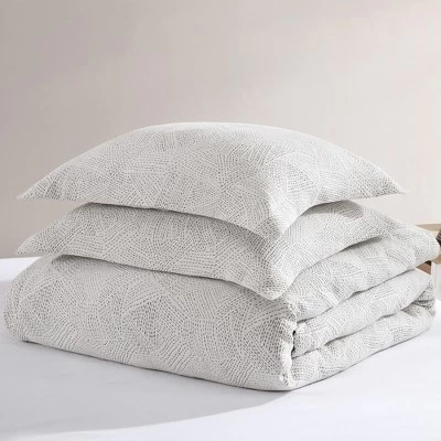 - THE WESLEY DESIGN: One of our most popular sets, Wesley is modern and contemporary. The front is a woven jacquard with intricate geometric stitching details and the reverse is solid cream 100% cotton. The comforter is filled with soft, hypoallergenic 100% polyester.