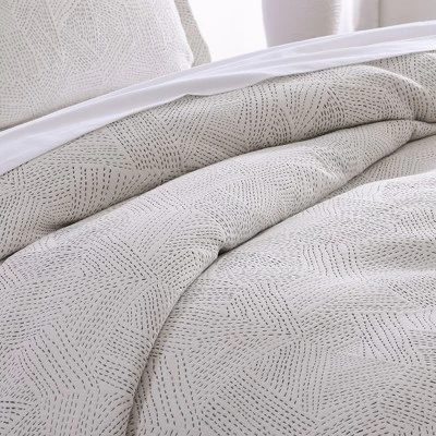 The Wesley Comforter Set by Levtex Home is modern and contemporary. Offered in cream and black, this design will immediately transform your bedroom. Made with a sfot, luxurious cotton, this comforter set features a woven jacquard in cream with black geometric stitching. It has a cream and black on the front and a solid cream 100% cotton on the reverse. It is filled with a hypoallergenic 100% polyester filler. The Wesley Comforter Set is machine washable and includes the comforter (106 x 94in.) and two king pillow cases(36 x 20in. ) Enjoy this for years to come!