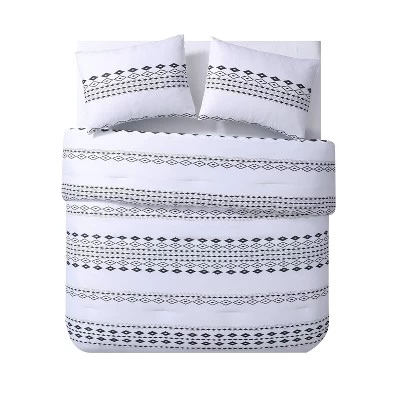 A subtle take on the Aztec print trend, the VCNY Home Azteca Comforter Set will bring a modern mix of patterns to your space. Horizontal lines of black diamonds pop against the comforterās crisp white background, which is perfectly paired with matching shams for a complete look youāll love. You can keep it looking fresh by machine washing in cold water, and drying on low setting.