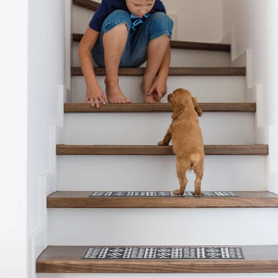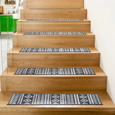 Enrich your stairs with these stunning, yet practical and decorative stair treads. The bohemian design adds interest and style to every step. The rubber backing provides additional safety for climbing kids and pets. At 26 inches x 8.6 inches, these machine washable treads are ideally sized for the majority of staircases.